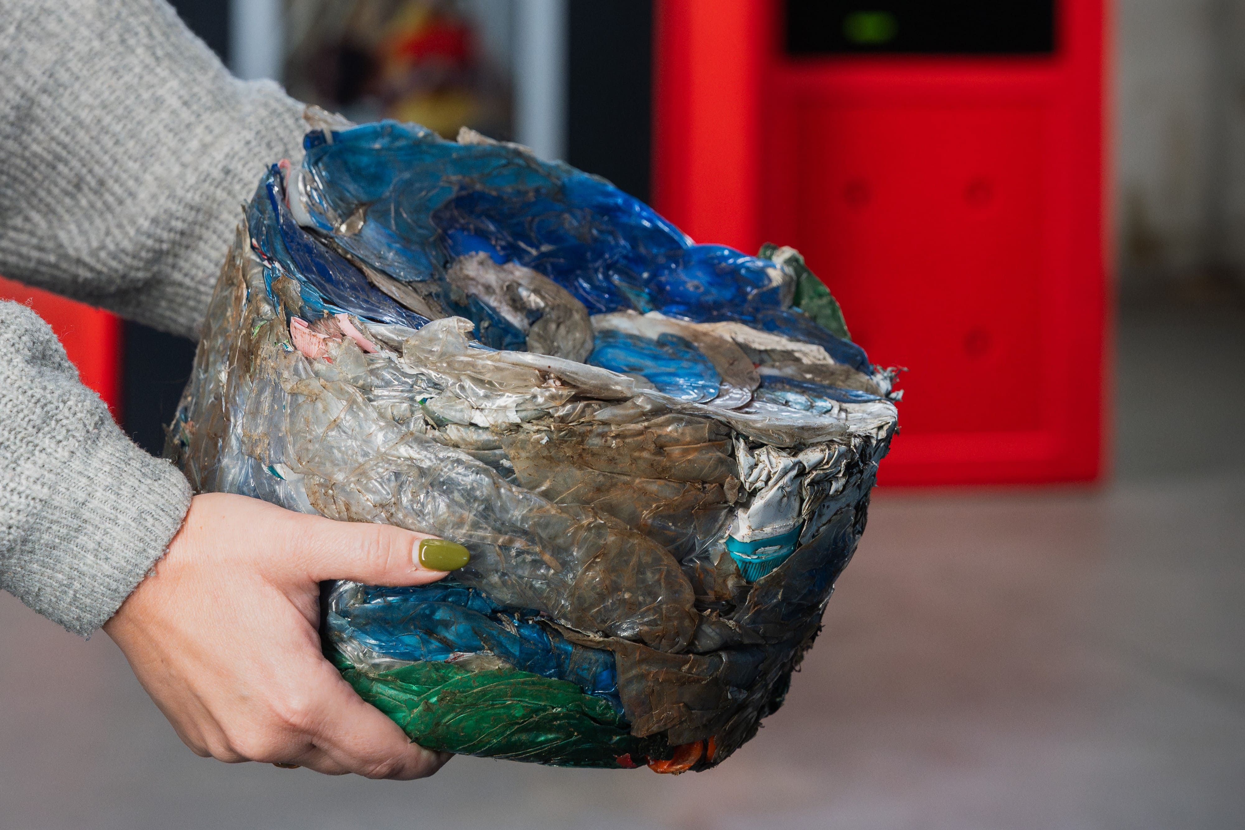 - Thanks to our special patented press, the packaging collected by our eco-compactors takes up less space than that collected by other machines. The volume reduction allows our system to save 40% of CO2 on the transport of PET to the recycling plant.